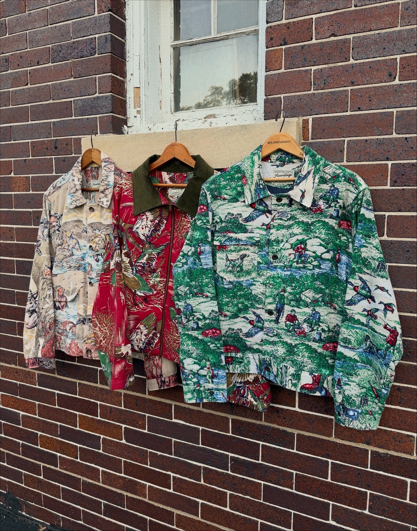 Hunting, camping, and outdoor themed jackets. Lightweight, brushed cotton flannel made out of vintage sleeping bags.