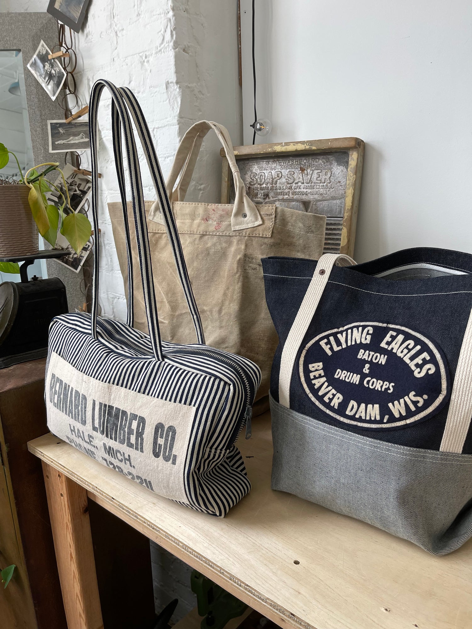 Structured and made from vintage canvas, these bags are practical for daily use.