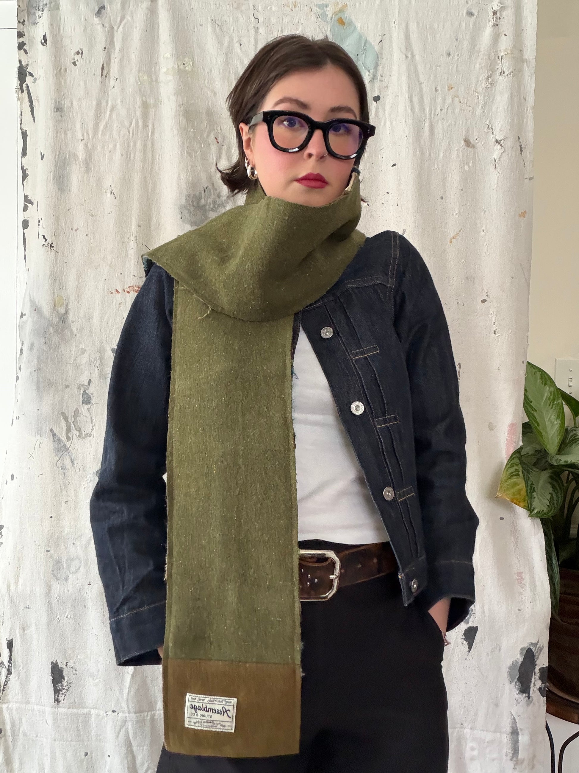 Reversible Patchwork Olive Wool and Mohair Scarf