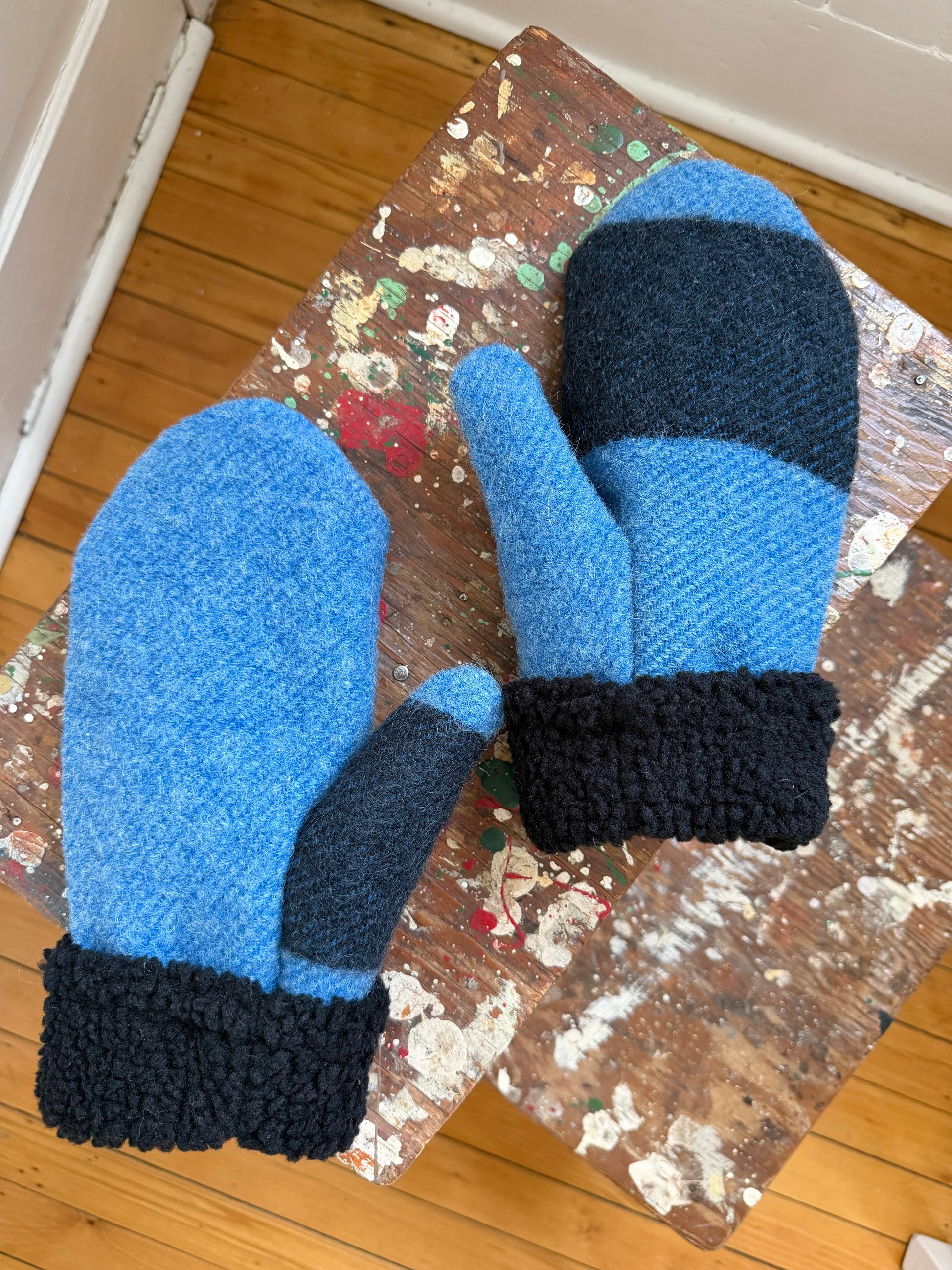Handmade, one of a kind wool mittens made from vintage 100% wool. Lined with a soft vegan sherpa fleece. They are very thick and cozy.