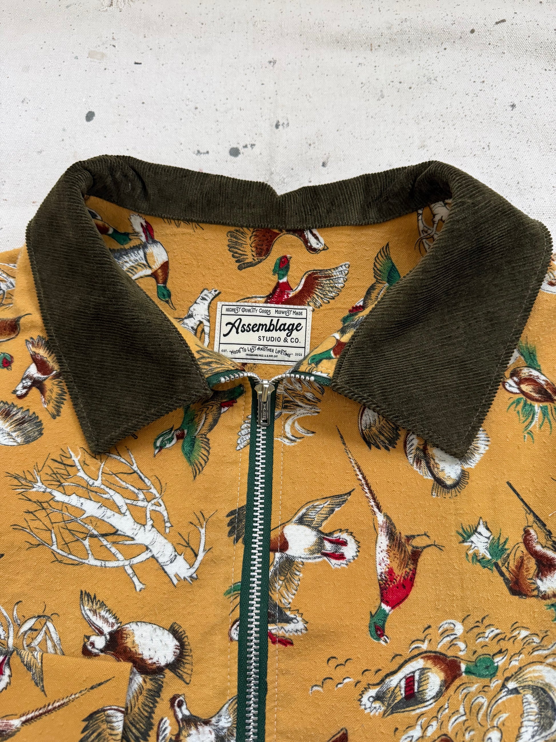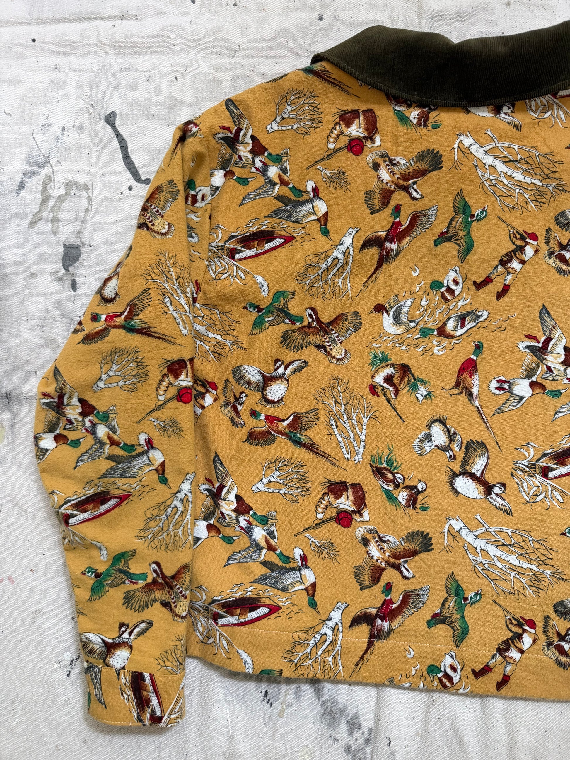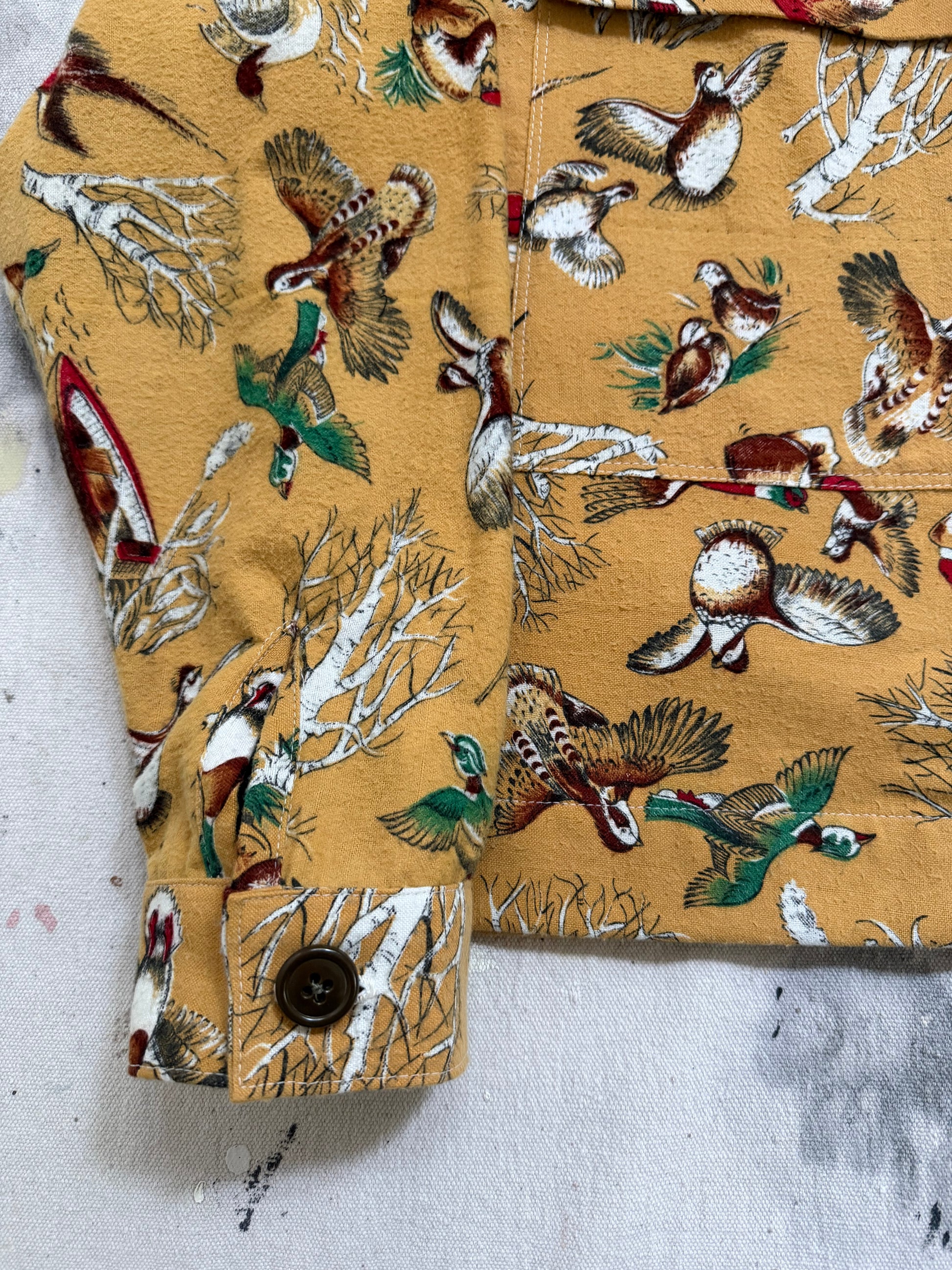 Handmade, one of a kind jacket made out of a 1970s sleeping bag that I deconstructed. Soft, 100% cotton brushed flannel with an incredible duck hunting scene. Lined with a lightweight cotton that was once the outer fabric of the sleeping bag.